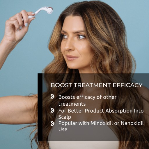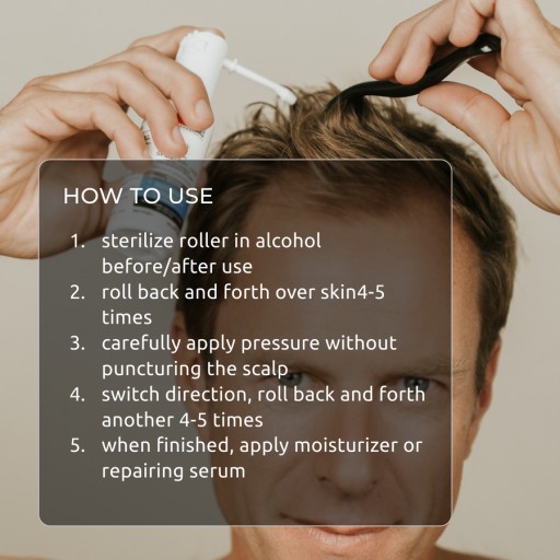 - Wałek stosowany na skórę głowy pomaga stymulować i odbudowywać włosy w obszarach przerzedzonych i łysiejących.