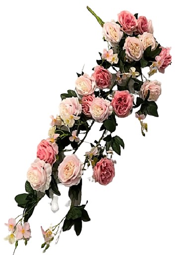 Girlandy z róż - Składa się z pięknych róż i naturalnie zielonych liści, bardzo dobrze imituje żywą roślinność. Główki kwiatowe w różnych rozmiarach ułożono tak, by tworzyły niezwykle naturalny efekt.