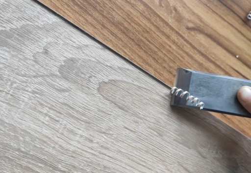 W kolejnym kroku przycinamy nadmiar okleiny za pomocą dłuta lub popularnego tapeciaka.