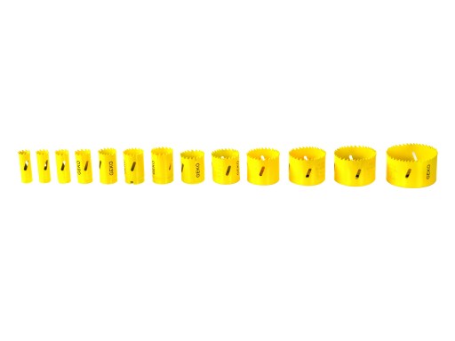 - 13 otwornic z bimetalu w rozmiarze: 19; 20; 22; 25; 29; 32; 35; 38; 44; 51; 57; 64; 76mm