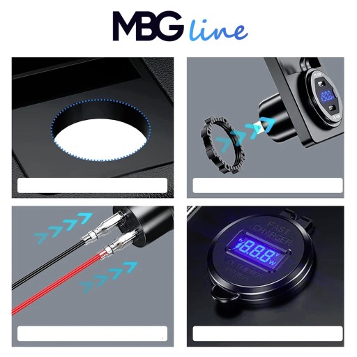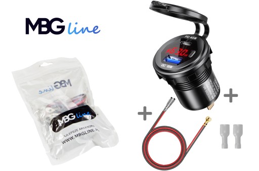 ☑ Wodoodporna super szybka ładowarka MBG LINE do motocykla, skutera, quada, motorówki 2x USB: QC3.0 + USB-C PD45W!
