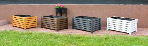 - Drewno malowane jest zanurzeniowo, preparatem który oprócz nadania koloru, impregnuje i zabezpiecza donicę przed działaniem warunków atmosferycznych.