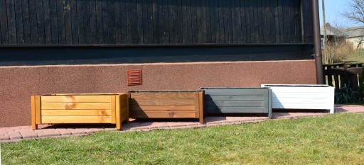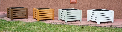 - Drewno malowane jest zanurzeniowo, preparatem który oprócz nadania koloru, impregnuje i zabezpiecza donicę przed działaniem warunków atmosferycznych.