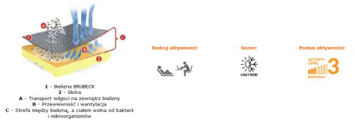 Koszulka damska CAMISOLE COMFORT COTTON przeznaczona jest dla aktywnych kobiet do codziennego użytku. Bieliznę termoaktywną wykonano z dwuwarstwowej dzianiny w technologii bezszwowej (seamless). Wewnętrzna, konstrukcyjna warstwa została stworzona z delikatnych mikrowłókien, które zapewniają skuteczne odprowadzenie wilgoci i zapobiegają tworzeniu się środowiska sprzyjającego powstawaniu nieprzyjemnych zapachów. Warstwę zewnętrzną stanowi najwyższej klasy bawełna długowłókienkowa, niezwykle cienka i łagodna w dotyku. Uszlachetniona przędza BRUBECK Air Jet, powstała specjalnie dla produktów z kolekcji COMFORT COTTON. Jej nowa jakość zapewnia niezmienne wymiary odzieży oraz wysoki poziom trwałości mimo wieloletniego okresu ich użytkowania i wielokrotnego prania. Udoskonalony, anatomiczny krój w połączeniu z przędzą BRUBECK Air Jet daje zwiększone poczucie komfortu i idealnie dopasowuje się do ciała, podkreślając sylwetkę. Bielizna zachowuje się jak druga skóra. Miękka i delikatna odzież chroni przed otarciami, a wykończenie bezuciskowymi ściągaczami dzianinowymi pozwala pozbyć się nawet najmniejszego dyskomfortu podczas użytkowania. Kompozycja doskonałej bawełny z przędzą BRUBECK Air Jet o nowych, wyjątkowych właściwościach pozwala długo utrzymywać skórę suchą i świeżą, ponieważ odprowadzanie wilgoci z powierzchni ciała jest jeszcze bardziej efektywne. Bielizna bardzo szybko schnie i nie wymaga prasowania.