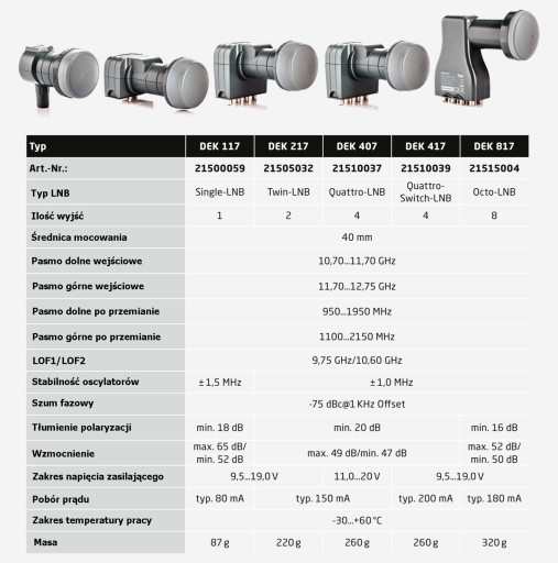 PARAMETRY konwertera Fuba DEK 417 LTE: