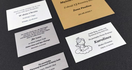 Grawer - Aluminiowa tabliczka z własną dedykacją 10x10cm srebrna lub złota