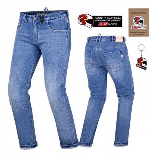 - Jeansy motocyklowe DEVON posiadają zaszewki modelujące kolano oraz specjalnie zaprojektowany, bezszwowy klin Comfort+ w kroku.