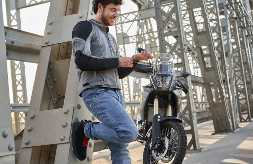 - Pętelka łącząca pozwala sparować je z kurtką motocyklową, a w funkcjonalnych kieszeniach możesz przechować dokumenty lub drobne na kawę.