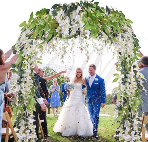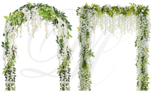 - Kwiaty wisterii idealnie nadają się jako zwis w dekoracji w kościele np. na ławkach lub na bramie pary młodej lub na sali na ścianie jako dodatek do dekoracji za parą młodą.