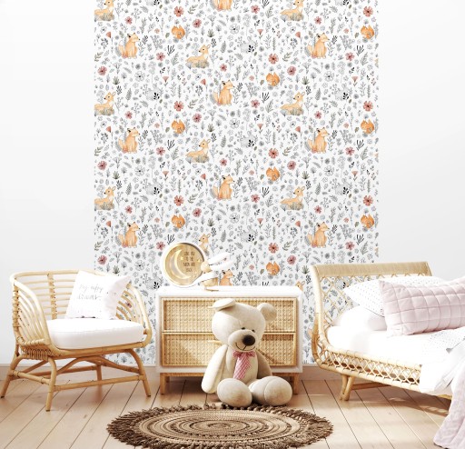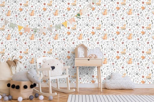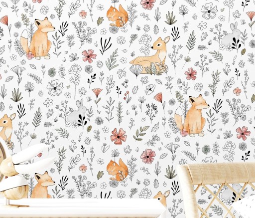 Лесные ЖИВОТНЫЕ - Олень, Лиса, Белка - ОБОИ на флизелине - УГЕПА