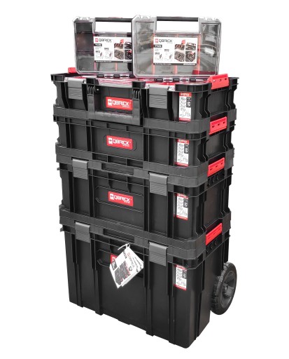 To kompletny, mobilny warsztat w kompaktowym rozmiarze. Wygodny organizer utrzyma w idealnym porządku wszystkie drobne narzędzia i akcesoria. Środkowy moduł, czyli pojemna skrzynka narzędziowa, to z kolei doskonały pomysł na przechowywanie średniej wielkości narzędzi. Skrzynia na kołach Cart stanowi mobilną bazę zestawu oraz miejsce, w którym zmieścisz większe elektronarzędzia.