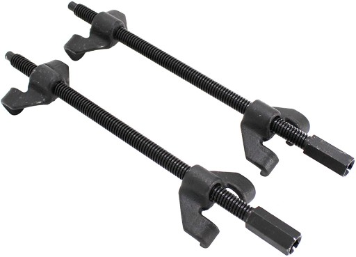 Zestaw ściągaczy 380mm do sprężyn zawieszenia. Dostosowane do wszystkich typów sprężyn w kolumnach McPherson'a oraz sprężyn niezależnych. Ściągacze współpracują z grzechotką 1/2". Drobnozwojowy gwint, ułatwia pracę sprężyny pod obciążeniem. Bezpieczeństwo pracy gwarantują specjalnie wyprofilowane dwuramienne uchwyty.