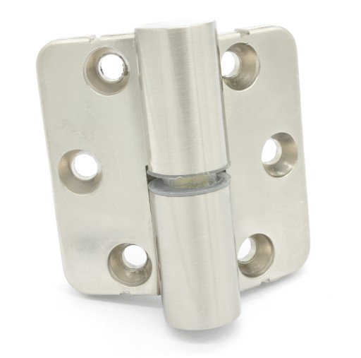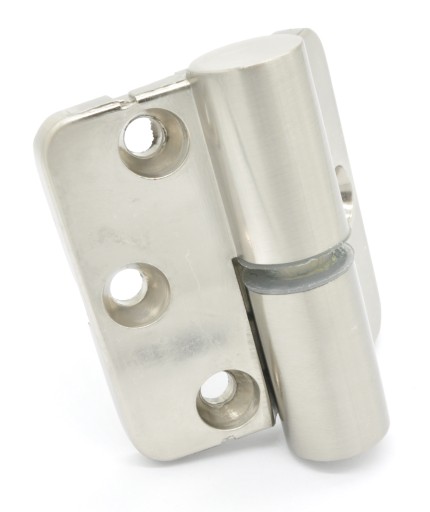 Opis: zawias wykonany jest z metalu (odlew znalowy) w kolorze łudząco przypominającym STAL NIERDZEWNĄ a trzpień jest stalowy. Zawias jest typem zawiasu nakładanego nawierzchniowego tzn.: stosowanego w drzwiach gdzie powierzchnia drzwi jest równa z powierzchnią futryny, ścianki bądź innej konstrukcji. Zawiasy mają funkcję samoczynnego domykania tzn.: drzwi po otworzeniu wracają do swojej spoczynkowej pozycji. Zawiasy przykręca się do drzwi i futryny 6 wkrętami (tzn. 3 do drzwi i 3 do futryny). Wkręty są maskowane specjalnymi metalowymi zaślepkami zasłaniającymi całe skrzydełka zawiasu. Maksymalne obciążenie 1 zawiasu to 10 kg - na drzwi powinno się zastosować 3 sztuki. Uzupełniają okucia służące do wykonania kabin np. w toaletach, przebieralniach itp.