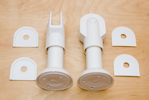 Opis: Okucia są wykonane z tworzywa sztucznego w kolorze białym. Służą do wykonania kabin np. w toaletach, przebieralniach itp.