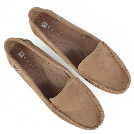 Мокасины Nessi 17130 бежевые замшевые 38