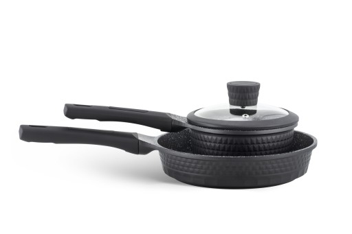 - Wykonane z tłoczonego aluminium pokrytego nieprzywierającą powłoką ceramiczno-marmurową NON-STICK,