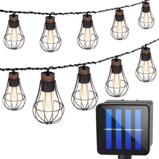 ⭐️ GIRLANDA SOLARNA ogrodowa OZDOBNA 10 Wiszących drucianych żarówek LOFCIK 2900K ciepła biała ⭐️