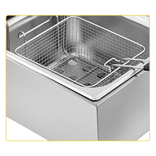 Komercyjna frytkownica z wystarczającą ilością miejsca do smażenia kurczaka, frytek, frytek, kotletów wieprzowych i wielu innych. Idealny do restauracji typu fast food, stoisk ze smażonymi kurczakami, firm cateringowych itp.