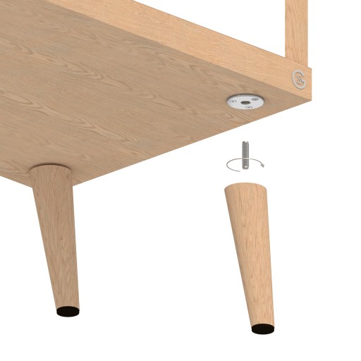 Nogi bukowe skośne, wykończone atestowanym, bezpiecznym lakierem, toczone w formie stożka. Nóżka posiada szpilkę z gwintem metrycznym M8, którą można w prosty sposób zamontować w mebel tapicerowany- za pomocą wkręcenia lub dokupując inne blachy montażowe, nakrętki, które są dostępne w naszej ofercie. Montażu można dokonać również za pomocą muf wkręcanych w mebel, w drewno lub płytę z gwintem wewnętrznym M8. Nóżka posiada przymocowany filc samoprzylepny, który zabezpiecza powierzchnię podłogi przed porysowaniem. Nóżki występują w innych wysokościach, kolorach. Wykonane są z drewna liściastego, z jednego elementu - nie są klejone, przez co są dużo bardziej wytrzymałe. Wytrzymują nacisk około 60 kg/szt.