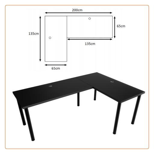 Dzięki dużej powierzchni roboczej o wymiarach 200 cm x 135 cm x 65 cm na biurku zmieścisz sprzęt elektroniczny, książki, notes i wiele, wiele innych akcesoriów.