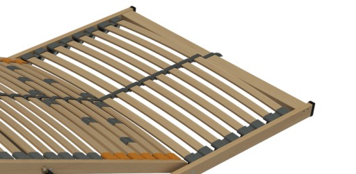 - Składa się z 28 brzozowych listew sprężynujących, mocowanych do ramy stelaża, w uchwytach z tworzywa odpornego na pękanie i odkształcanie