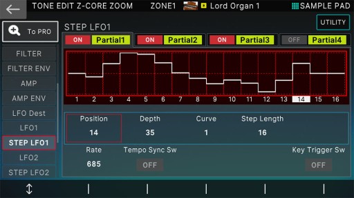 FANTOM-0 ułatwia tworzenie długich, ewoluujących pasaży, animowanych tekstur w stylu modularnym oraz dźwięków o głęboko skomplikowanym ruchu. Masz do dyspozycji dwa LFO na każdą część i cztery partie na ton - a ponieważ możesz ułożyć 16 tonów, daje to aż 128 LFO na głos! Dostępne są również krokowe LFO z 16 krokami automatyzacji z synchronizacją rytmu i 35 krzywymi do wyboru na każdy krok.