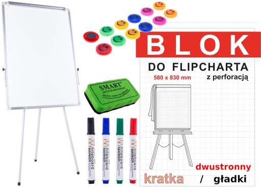 Flipchart 60x90 magnetyczny suchościeralny + akcesoria + papier
