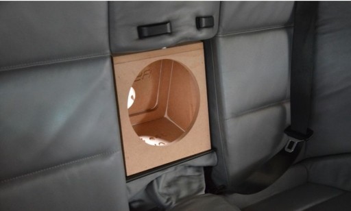 OBUDOWA / SKRZYNKA NA SUBWOOFER DEDYKOWANA DO BMW E46 Cabrio 1998 - 2007 - NOWA, Z EFEKTOWNĄ I ESTETYCZNĄ MASKOWNICĄ, WYKONANA Z MDF-U, DO SUBWOOFERÓW 20-CM