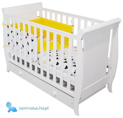 Łóżeczko niemowlęce Misza to niezwykle estetyczny i stylowy mebelek którego charakteryzują szerokie, płaskie szczeble oraz pięknie wykończone szczyty. Łóżeczko wykonane zostało z drewna sosnowego, a elementy dekoracyjne z płyty MDF. Bardzo praktycznym rozwiązaniem w łóżeczku jest szuflada z przykryciem dzięki której zyskujemy dodatkową przestrzeń do przechowywania.