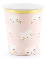 Kubeczki papierowe Kotek w kolorze jasnoróżowym, pojemność ok. 200 ml. Jedno opakowanie zawiera 6 sztuk.