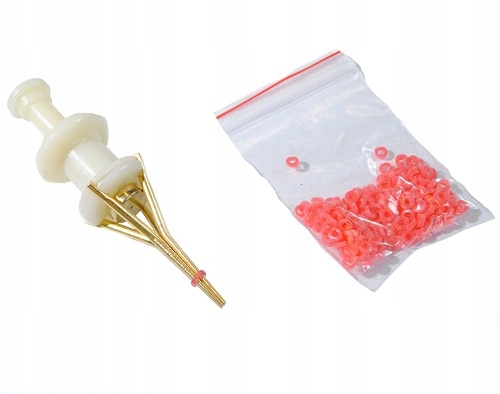 Szczypce do zakładania gumek na kulki proteinowe oraz pelet. Można również stosować do nawlekania ochotki na haczyk.