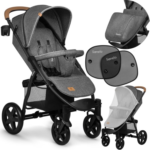 Wózek spacerowy do 22 kg z dużymi bezobsługowymi kołami oraz zestawem dodatków Lionelo Annet Plus