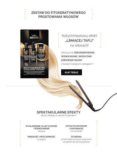 Wygładza pasma i uzupełnia mikrouszkodzenia w strukturze włosa, dzięki czemu zapewnia efekt prostych, gładkich i lśniących zdrowym blaskiem włosów. Formuły produktów do fitokeratynowego prostowania chronią pasma włosów przed niekorzystnym wpływem urządzeń do termostylizacji, takich jak np. prostownica.