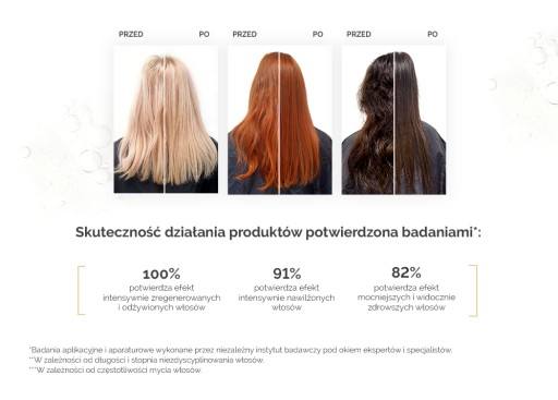 Zabieg wygładza, uelastycznia i wzmacnia włosy. Wydobywa ich naturalny połysk i sprawia, że stają się one nie tylko gładkie, nawilżone, miękkie i przyjemne w dotyku, ale także zdyscyplinowane i odporne na puszenie.Przygotowanie i stosowanie: