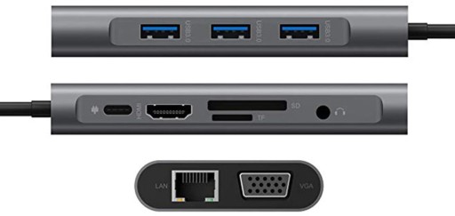 HUB USB-C ADAPTER LAN Gigabit RJ45 HDMI 4k Micro SD 3x USB 3.0 Power Delivery PD VGA