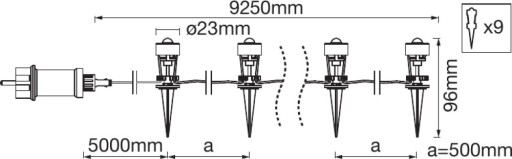 - Wysoki stopień ochrony na warunki atmosferyczne: IP65 - punkty świetlne i IP44 - przewód zasilający.