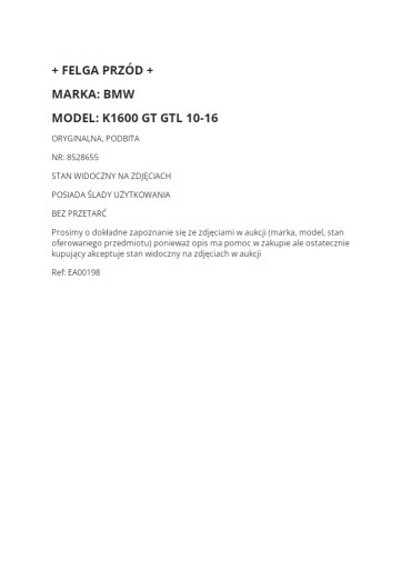 Prosimy o dokładne zapoznanie się ze zdjęciami w aukcji (marka, model, stan oferowanego przedmiotu) ponieważ opis ma pomoc w zakupie ale ostatecznie kupujący akceptuje stan widoczny na zdjęciach w aukcji