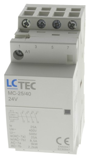 Prezentowany produkt to stycznik modułowy LCTEC. Styczniki te przeznaczone są do stosowania w układach automatyki budynku, instalacjach biurowych i przemysłowych, przy sterowaniu układami zasilania oświetlenia, ogrzewania, wentylacji, silników, pomp itp. Napięcie sterowania cewki powoduje, że stycznik powinien być stosowany przy danej wartości napięcia prądu zmiennego lub stałego. Poniżej są parametry, które pomogą dobrać stycznik do konkretnego zastosowania: