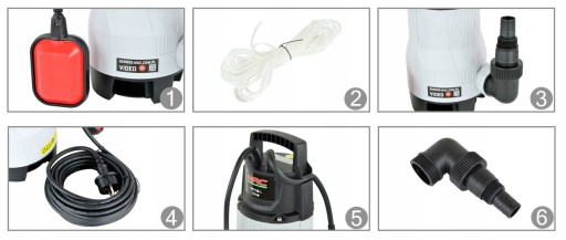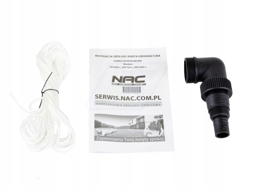 - W zestawie sznurek ułatwiający zanurzanie pompy w zbiornikach