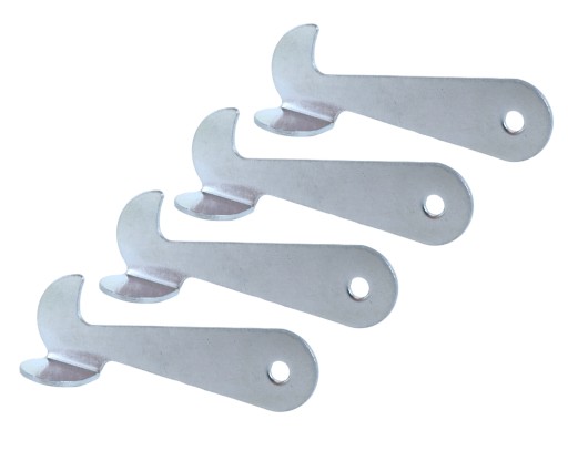 Haczyk do wkładek blatów, do zamocowania za pomocą wkrętów stożkowych lub podkładkowych. Haczyki służą do połączenia blatów w stołach rozsuwanych. Wraz z haczykami posiadamy w ofercie także klamry do blatów, obejmy do stołu, szpilki drewno-metal oraz zawiasy do blatów.