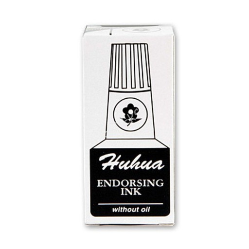 Uniwersalny tusz do pieczątek marki HUHUA, w nieblaknącym czarnym kolorze: