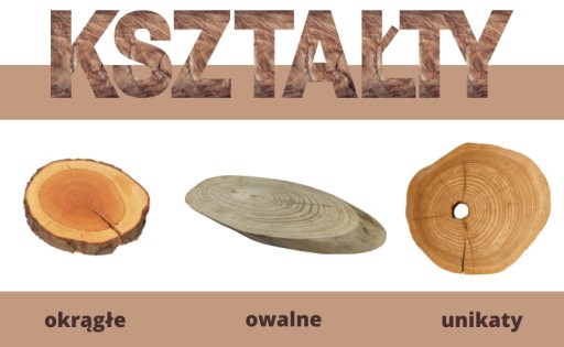 Oferujemy szeroki asortyment drewnianych plastrów z rozmaitych gatunków drzew, jak również gotowe produkty i realizacje.