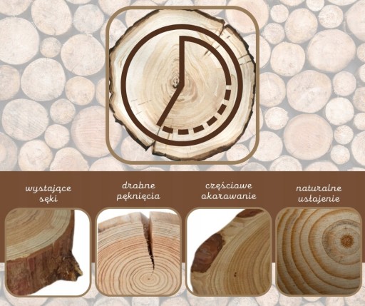 Drobne pęknięcia i szczeliny, niepowtarzalne usłojenie, znamiona sęków i naturalnych odcieni.