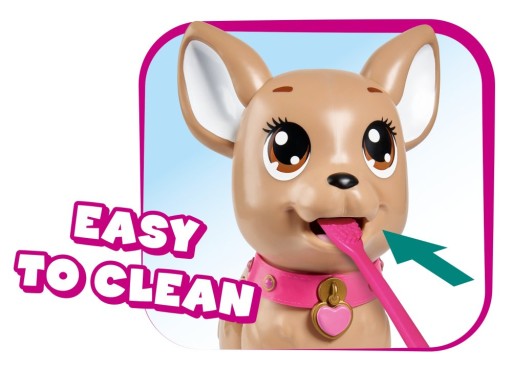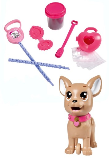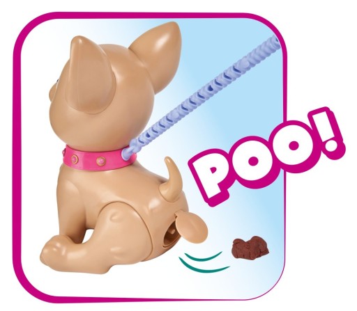 Poo Poo Puppy to uroczy piesek z serii Chi Chi Love. Zrób ciasteczka dla swojego ukochanego czworonoga. Włóż masę plastyczną do foremki i stwórz pyszne przysmaki, następnie nakarm nimi swojego szczeniaczka. Czas na ulubiony spacer! Załóż smycz i wyprowadź go na spacer, nie zapomnij zabrać ze sobą woreczków dołączonych do zestawu. Gdy będziesz prowadzić swojego pieska na smyczy, po przejściu ok. jednego metra zrobi kupkę. A teraz posprzątaj po swoim pupilu! Ten niezwykły zestaw z pewnością sprawi wiele radości, dzieciom marzącym o swoich własnym czworonogu. A przez funkcję, którą posiada nauczy dzieci odpowiedzialności i opieki nad zwierzętami.