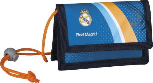 Funkcjonalny portfel od firmy Astra. Interesująca grafika przedstawiająca motyw klubu piłkarskiego Real Madryt z pewnością przypadanie do gustu każdemu miłośnikowi futbolu. Portfel jest zapinany na dwa rzepy. W środku znajdują się liczne przegrody w tym jedna zapinana na zamek błyskawiczny. Portfel można nosić na szyji za pomocą sznurka lub doczepić do paska dzięki szlufce, która znajduje się z tyłu portfela.