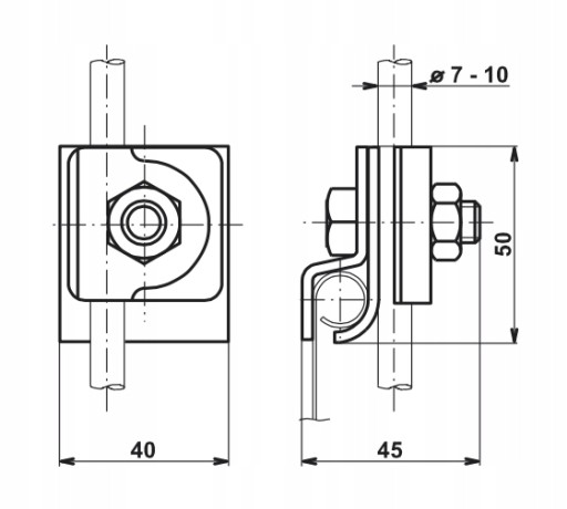 Bardzo solidny uchwyt odgromowy ze stali nierdzewnej - służy do mocowania drutu do rynny, dedykowany do drutu fi8mm i fi10mm malowany proszkowo na kolor czarny