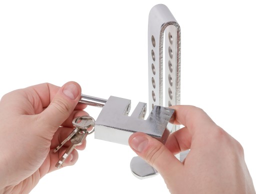 Solidna blokada bezpieczeństwa z kłódką ze ze stali nierdzewnej wykonana jest w celu poprawy bezpieczeństwa twojego samochodu oraz mienia.