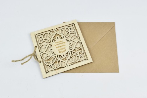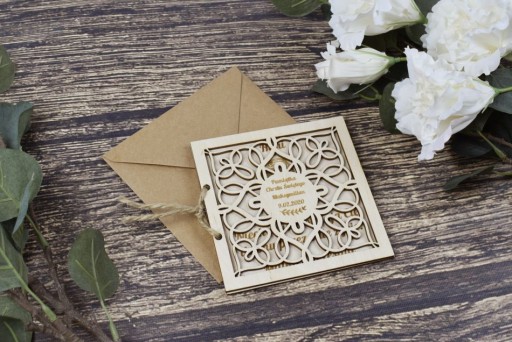 Naturalny charakter drewna pasuje do każdego wnętrza dzięki czemu kartka może stanowić element dekoracyjny.