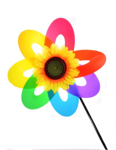 Kolorowy wiatraczek na drewnianym patyku jest idealny do ozdoby ogrodu lub na balkon. Piękne, żywe kolory sprawiają, że nie tylko dziecko nie może oderwać od niego oczu.