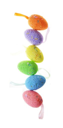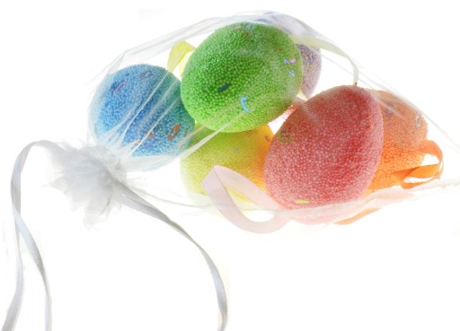 ЯЙЦА ИЗ ПЕНОПЛАСТИНА В СЕТКЕ, РАЗНОЦВЕТНЫЕ ПОДВЕСКИ x6